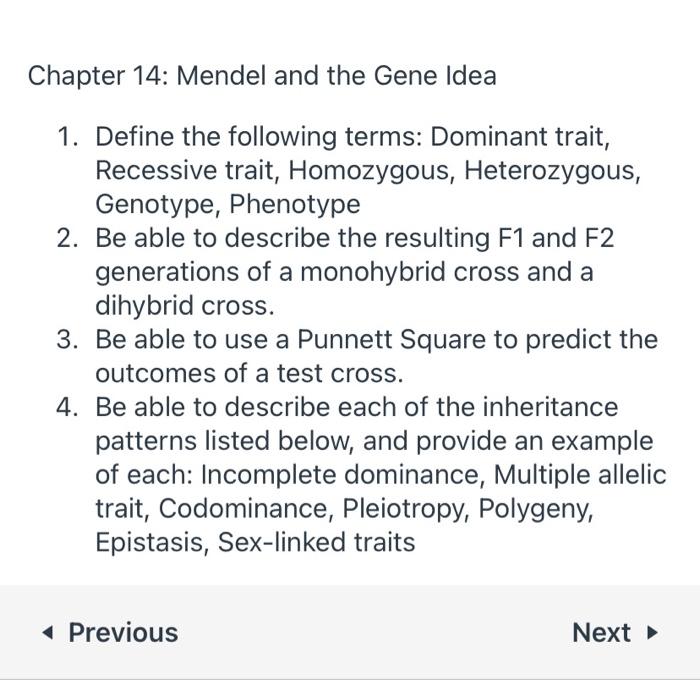 Solved Chapter 14 Mendel And The Gene Idea 1 Define The Chegg Com